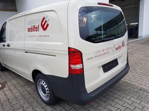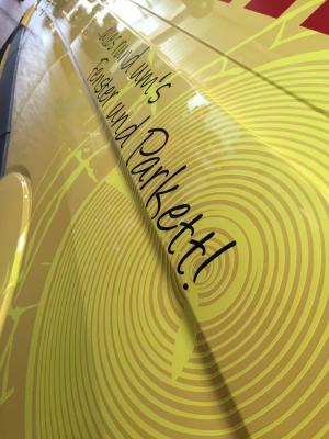 Mit HP Latextinten produzierte Fahrzeugbeschriftungen und Aussenbeschilderungen haben ebenso eine bessere Haltbarkeit als Produktionen mit Eco-Solvent-Tinten.