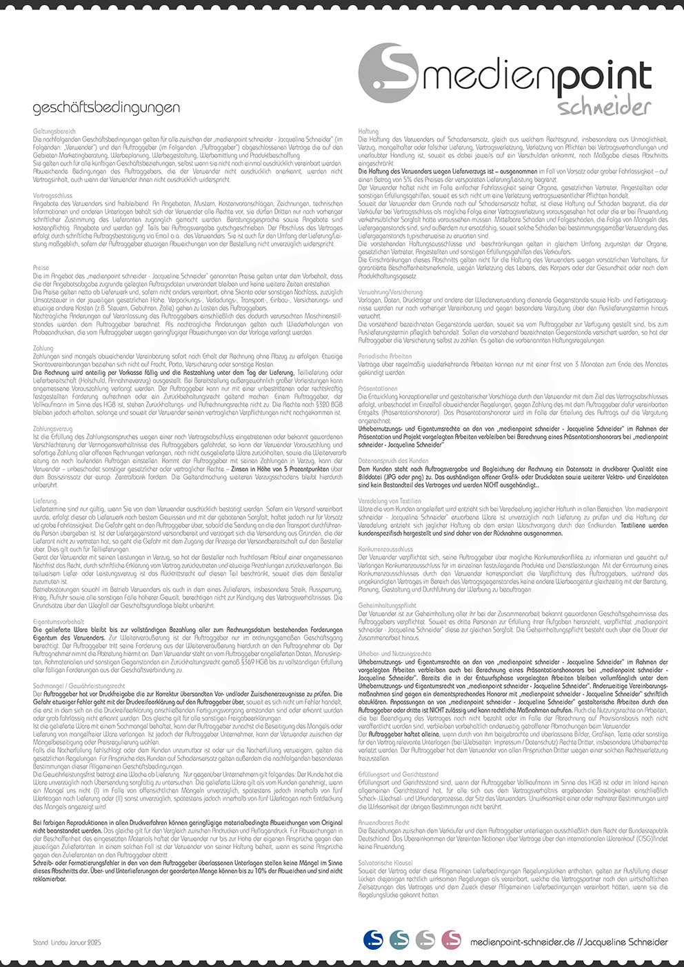 AGB´s / Geschäftsbedingungen medienpoint schneider-Jacqueline Schneider (Stand 01.2025)